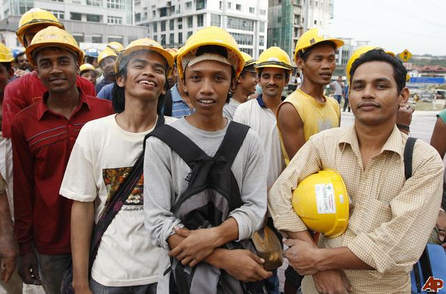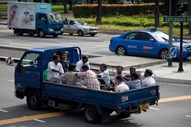 有少部分工人生活條件較好,但多數人的生活及住房條件極差,在小棚屋裡居住。他們收入低微,有些雇主利用法律制度中的漏洞剝削他們。他們的工作許可證有效期為兩年,到期後不能保證獲延長。一些在船廠工作的工人有時待幾個月也沒有工作。